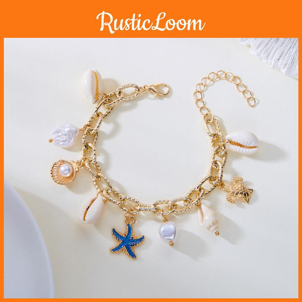 This bohemian beach jewelry set includes a shell-themed bracelet and anklet crafted from durable alloy with a sleek electroplated finish, these accessories add a stylish touch to casual summer outfits. Perfect for beach outings or casual daytime wear, they support effortless fashion expression. Clean with a soft cloth to maintain their shine.