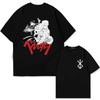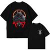 Japan Anime Berserk T-Shirt Guts Print Graphic Tee Men's 90s Summer Short Sleeve Casual Manga Dark Fantasy Black Swordsman Style