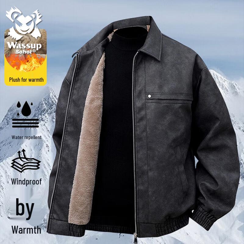 Wassup Sohot Men's Retro Plush Lined Winter Lapel Jacket