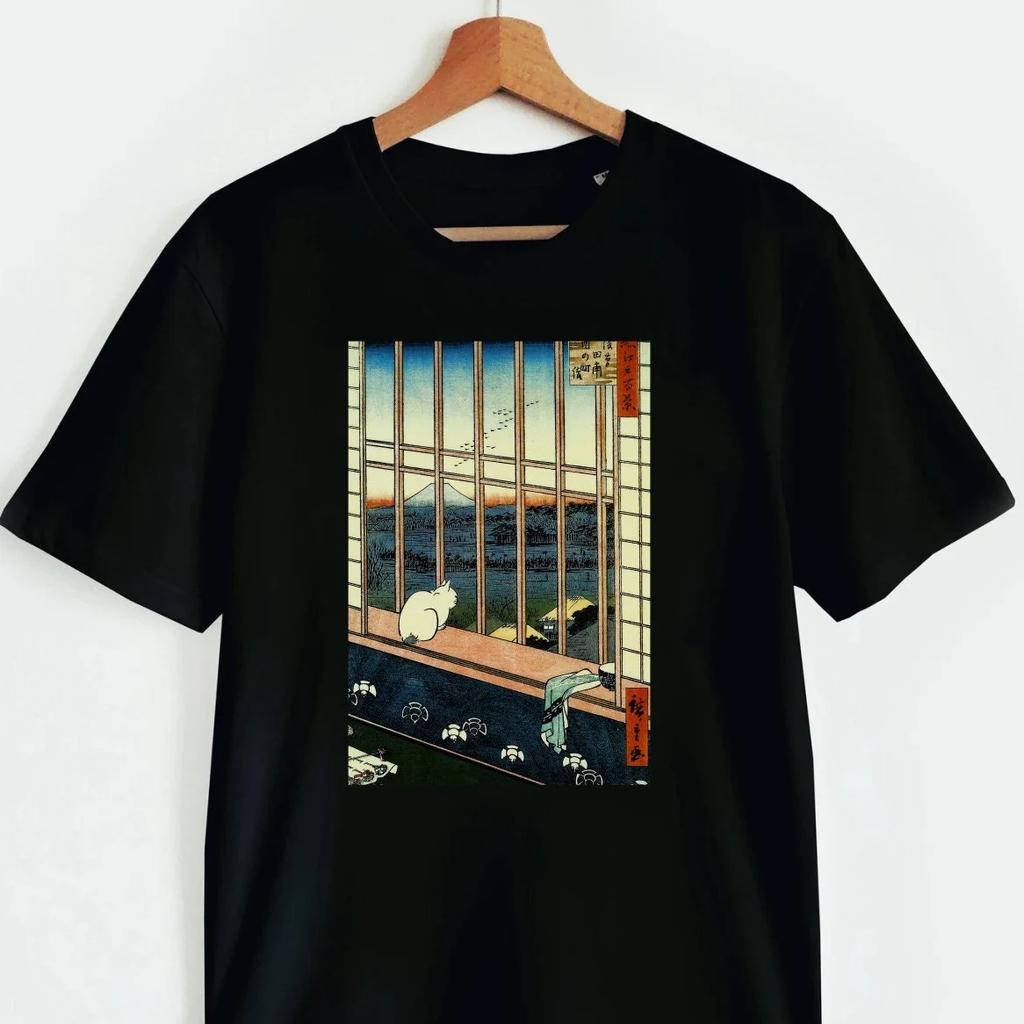 Japanese Art T-shirt, Japanese Woodblock Shirt, Japanese Aesthetic, Japan Cat Tee, Ukiyo-e T-shirt, Mount Fuji Shirt, Edo Period