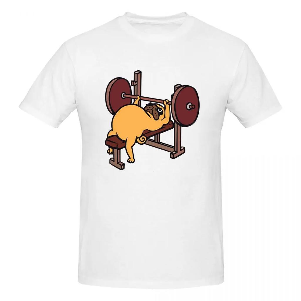 Pug Bench Press T-shirt Men's Funny Tee Men Round Neck Short Sleeve Retro Street High-quality Crew-neck Short-sleeved Men's Tee