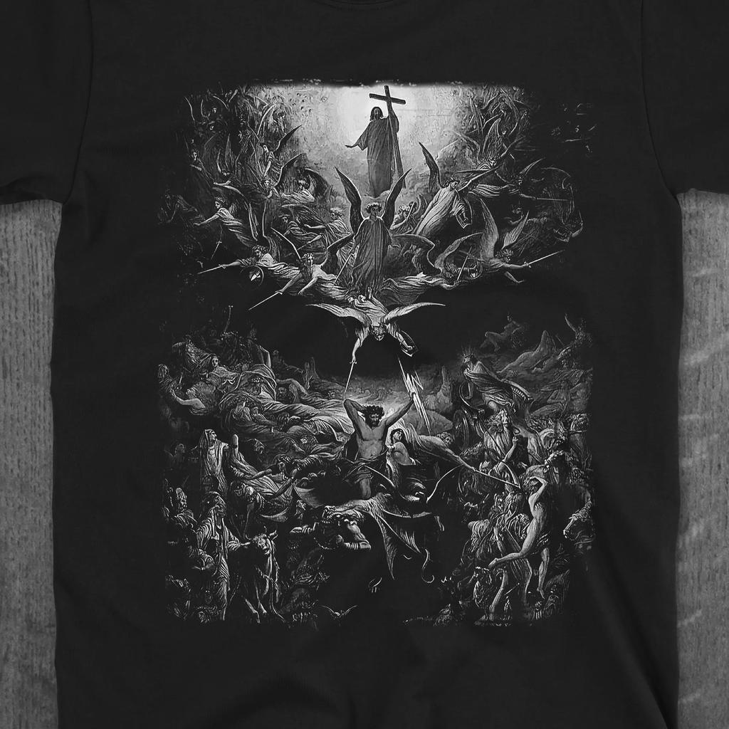 Best Selling Fashion New Christian Triumph T-Shirt | Gustave Doré Religious Art Tee | Gothic Angels Vs Pagan Gods Shirt Men Tee