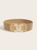 This summer elastic wide belt features a durable metal alloy double ring closure, providing secure fastening for coats and dresses. Made of metal with a width exceeding 6cm, it offers a bold, fashionable accent. Its double-hinge hook design ensures a snug fit. Ideal for adding a unique touch to seasonal outfits, its easy to care for simply wipe clean with a damp cloth.