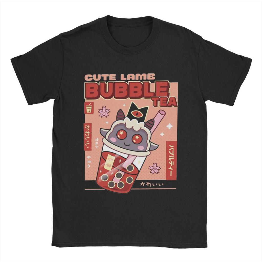 Casual Cute Lamb Bubble Tea Cult Of The Lamb T-Shirt Men O Neck 100% Cotton T Shirt Game Anime Tees Printing Clothes