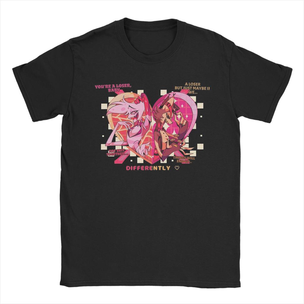 Men T-Shirt Angel & Husk Loser Baby Hazbins Hotels Novelty 100% Cotton Tee Shirt Short Sleeve T Shirts Round Collar Tops Unique