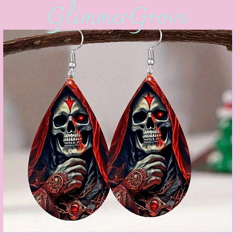 Halloween Themed Horror Skull Pumpkin Pattern Women Earrings For Cosplay And Party Wear