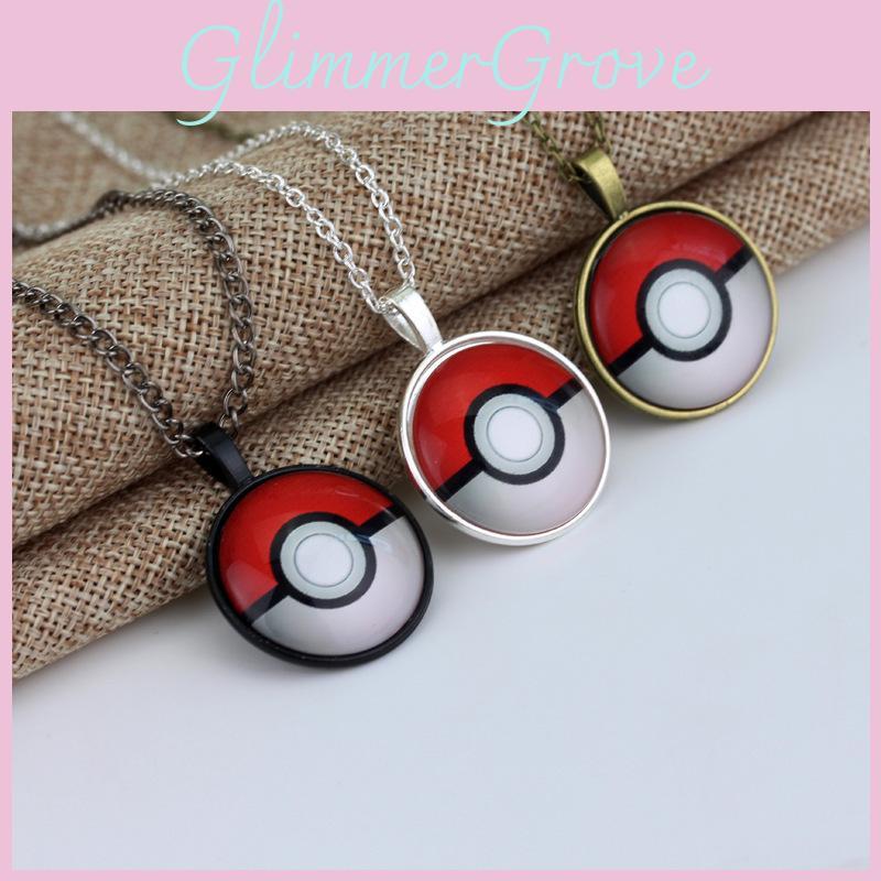 Poke Ball Pendant Necklace With Gemstone Embellishments For Unisex Gift
