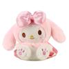 This plush My Melody backpack features soft, durable polyester exterior with a nylon interior lining. Designed for daily use, it offers a zipper closure and a dedicated mobile phone pocket for easy organization. Its medium-soft hardness supports comfortable carrying. Ideal for casual outings and daily commuting, it can be maintained by wiping clean with a damp cloth.
