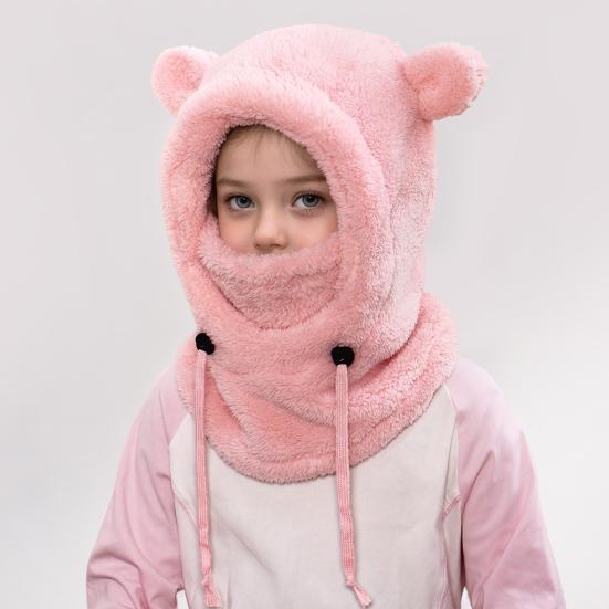 Yousheng Children Hat with Adjustable Face Guard Full Coverage Ski Hat Cartoon Bear Ear Design Cold Weather Face Guard Scarf Hat