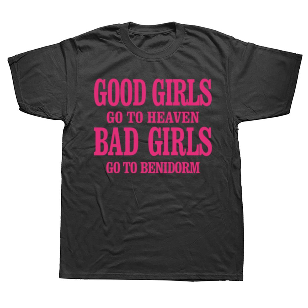 Funny Good Girls Goto Heaven Bad Girls Goto Benidorm T Shirts Graphic Cotton Streetwear Short Sleeve Birthday Gifts T-shirt Men