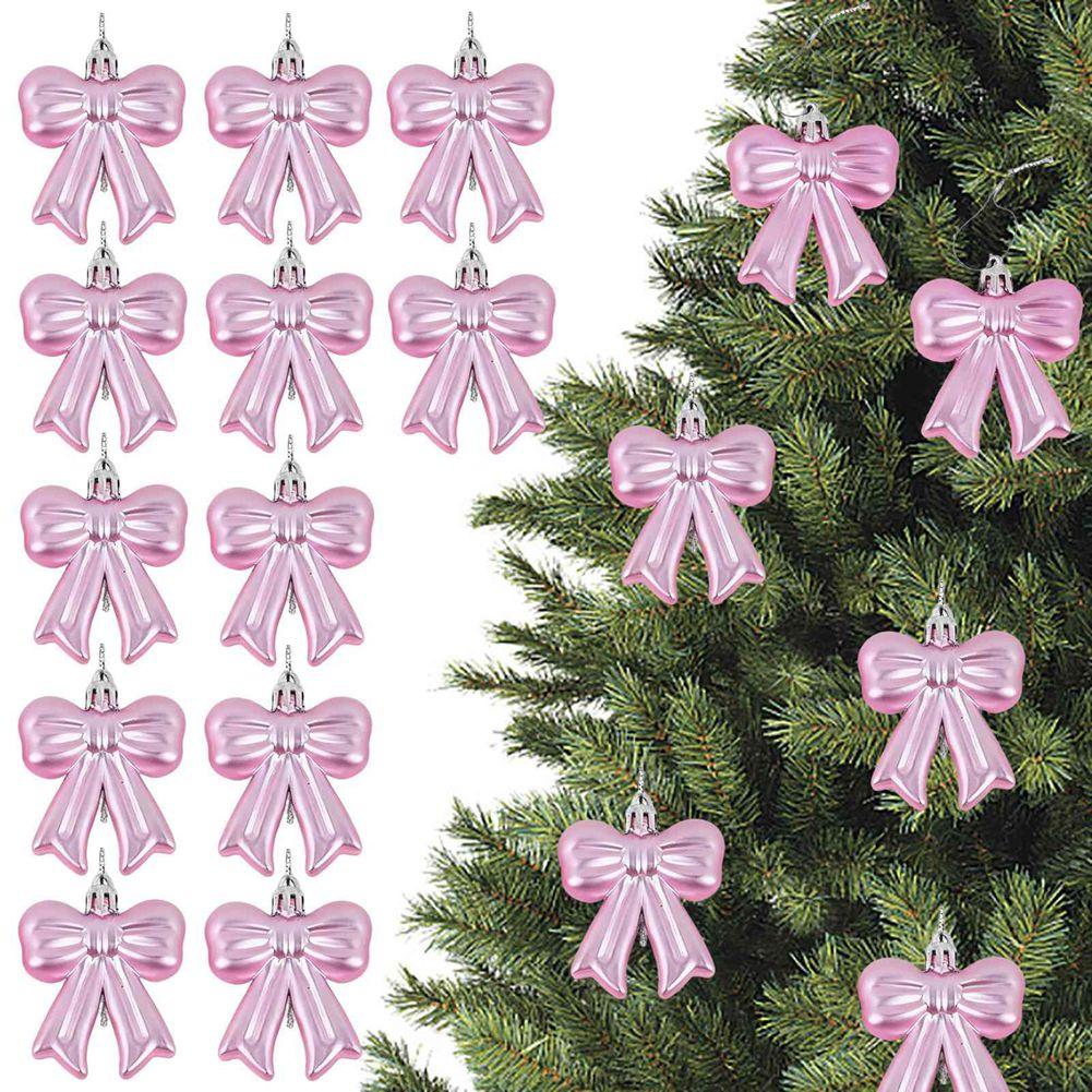 12 Pcs Pink Bow Ornament for Christmas Tree 3D Coquette Bow Hanging Bowknot Hanging Decoration for Xmas Tree Wedding Decor