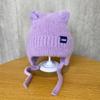 New Women Cute Cat Ear Earflap Winter Hat Fashion Windproof Knitted Hat Kpop Style Soft Beanie Hats Candy Colors Streetwear Cap