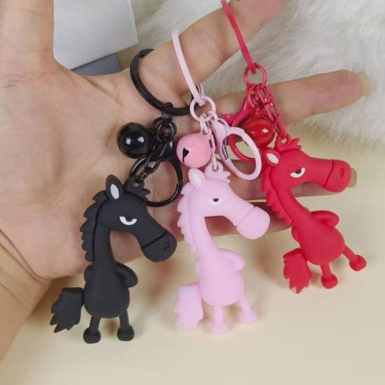 Charming Cartoon Horse Design In Multiple Colors: Featuring an adorable cartoon horse motif available in black, pink and red, this keychain caters to diverse style preferences. The vibrant colors and playful design instantly brighten keys or bags, making it a standout accessory that complements casual or professional looks alike. Its eye-catching appeal enhances personal expression wherever it's displayed.