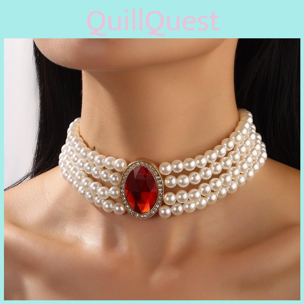 Palace Elegant Multi Layered Simulated Pearl Gemstone Necklace Neck Accessory For Winter Accessory