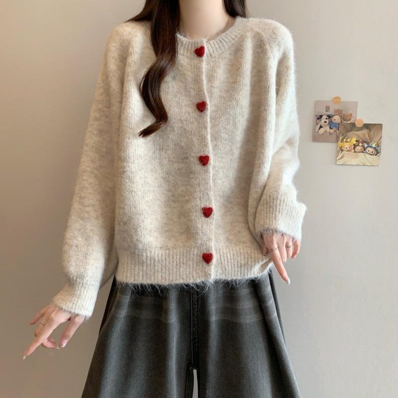 Love Single-breasted Age-reducing Soft Waxy Sweater Jacket Women's Autumn and Winter Loose and Thin Shoulder Sleeves Knitted Top Cardigan