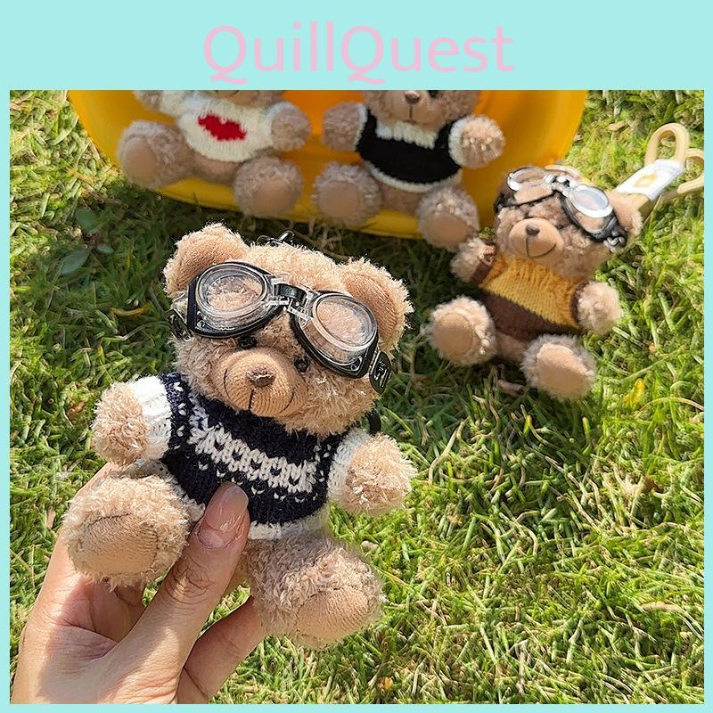 Charming Original Handmade Teddy Bear Keychain With Cozy Sweater And Glasses