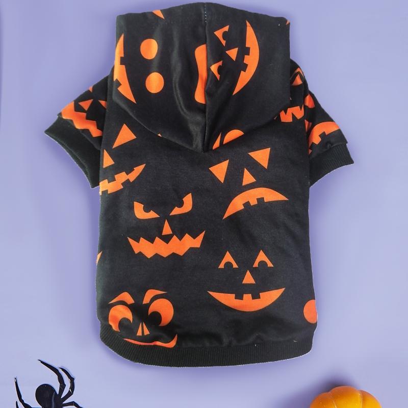 Black Hooded Halloween Dog Costume, Winter Warm Pumpkin Print Pet Sweatshirt, Small Dog Festive Outfit, Halloween Party Clothes