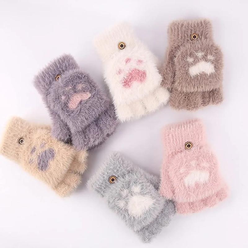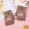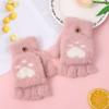 Korean Cartoon Fashion Cat Scratch Flip Gloves for Women Thick Velvet Warm Gloves Daily Office Student Writing Finger Gloves