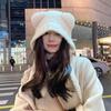 Korean Style Winter Warm Plush Hat for Women Cute Pea Bear Ear Knitted Hat Windproof Earmuffs Outdoor Travel Shopping Cold Hat