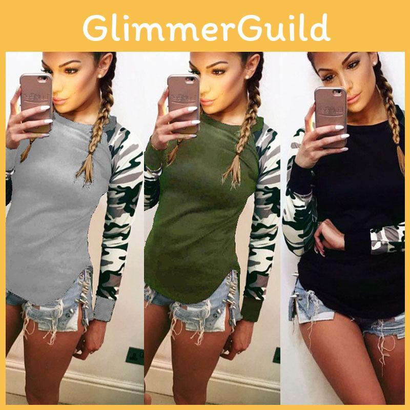 Premium Quality Damen Camouflage Printed Long Sleeve Pullover T-shirt For Stylish Comfort