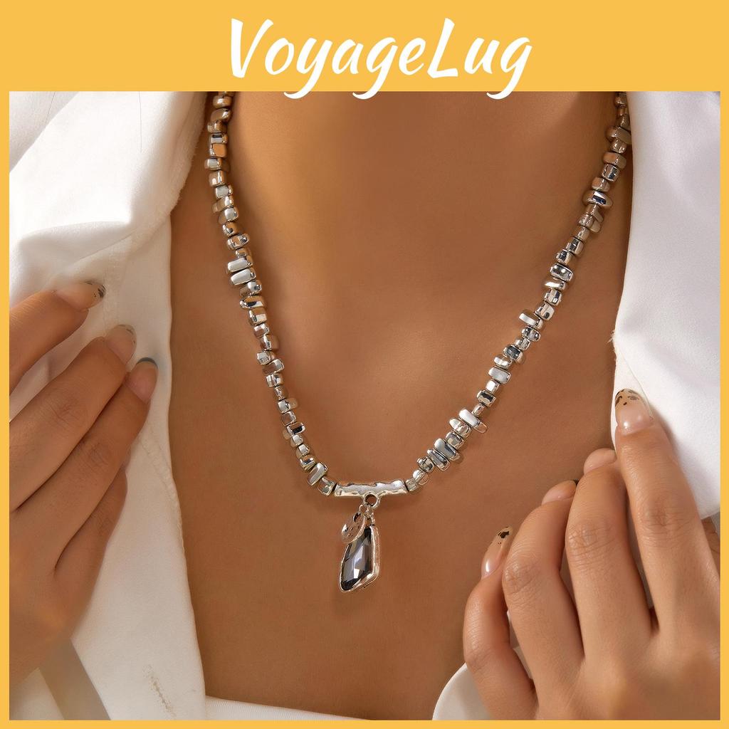 This geometric alloy choker and bracelet set features a sleek design with a rhinestone pendant, crafted from durable alloy with a polished electroplated finish.supporting comfortable wear. Ideal for modern accessories, this set complements casual or chic outfits. Wipe clean with a soft cloth to maintain shine.