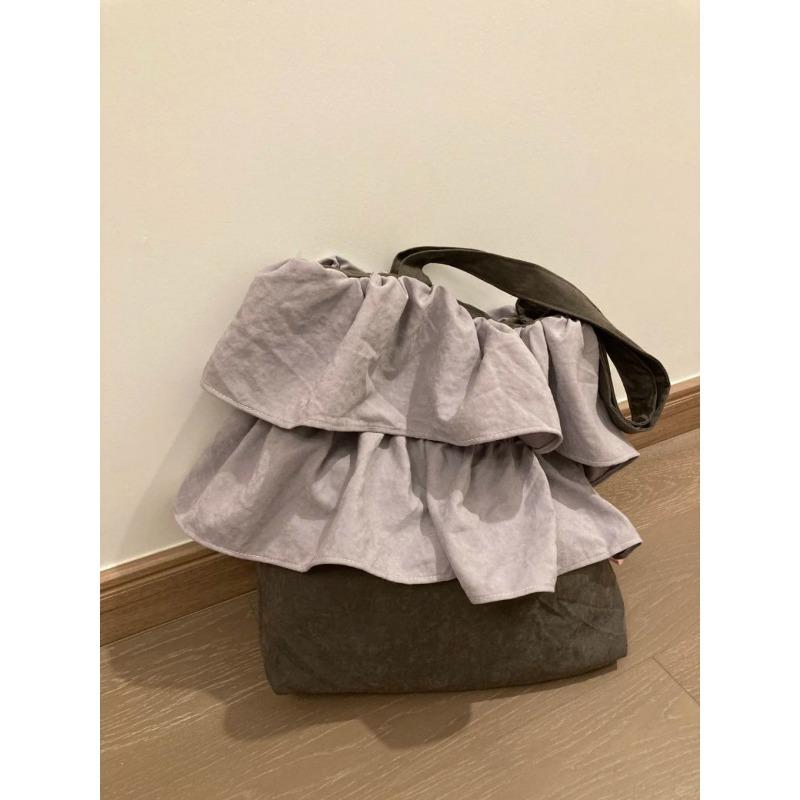 Single-shoulder Bag with Contrasting Colors, Ruffled Edges and Flower Bud Bag, Cute Style, Large-capacity Tote Bag