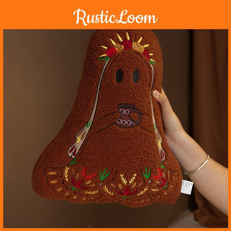 Halloween Ghost Plush Cushion With Embroidered Design For Living Room Decor