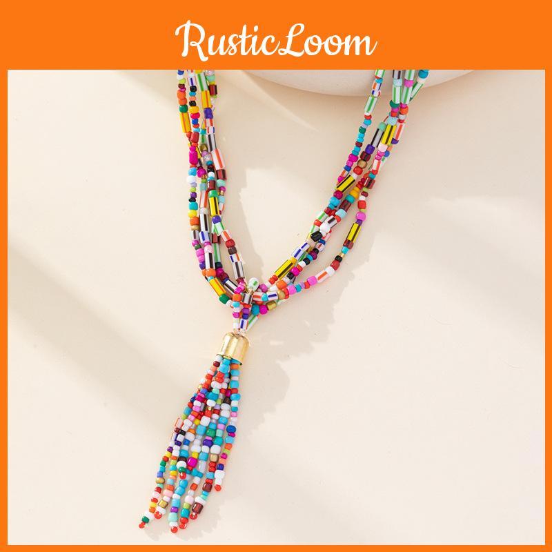 This beaded pendant necklace features a geometric design accented with metallic details, combining style with everyday functionality. Made of rice beads with an alloy charm, it measures 68-114cm. Its elegant, versatile look supports office wear and casual outings. Hand wipe with a damp cloth to maintain its shine.