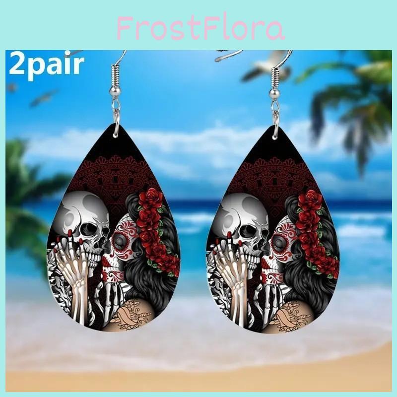 Halloween Themed Cat Pumpkin Skull And Dog Pattern Women Acrylic Earrings For Festival Wear