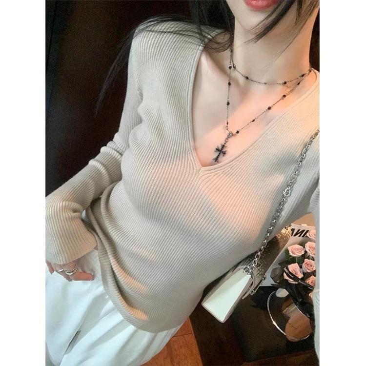 Pure Desire Spice Girl Design Collar Slim and Thin Long Sleeve Knitted Inside Women's Autumn Personalized Sweater Base