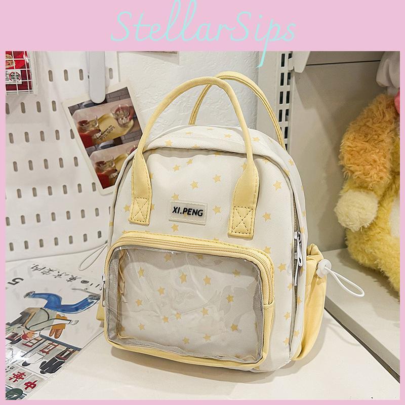Fashionable Star Patterned Student Backpack With Transparent Compartment For Daily Use