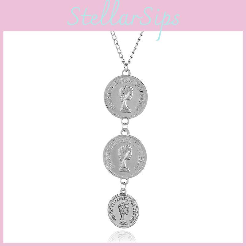 Euro Style Coin Pendant Necklace With Multilayer Water Wave Chain For Women Men
