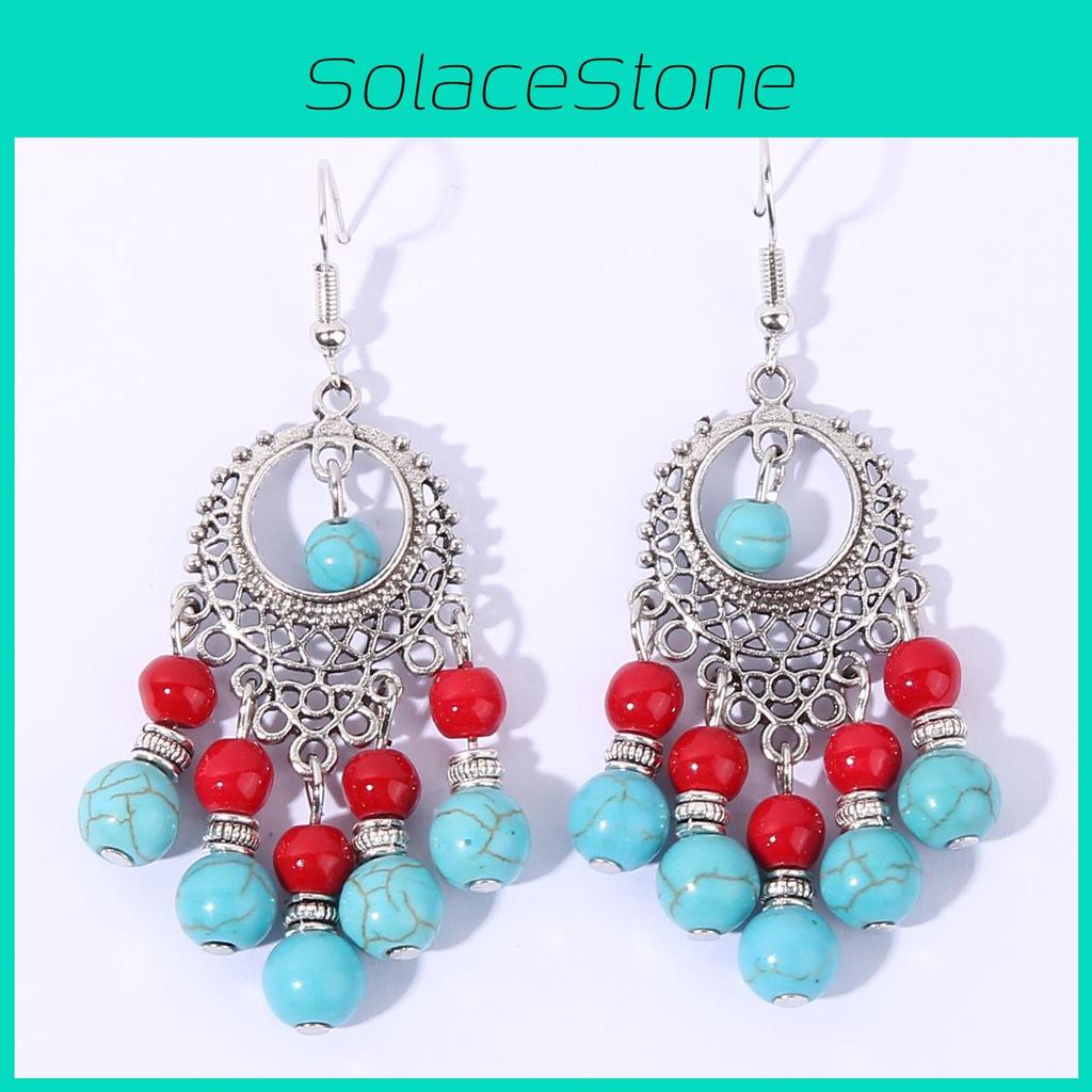 These bohemian-inspired tassel earrings feature a water-drop shape crafted from durable alloy. they showcase intricate handwork with traditional accents and vibrant turquoise, red, or sky blue colors. Ideal for festival, vacation, or cultural events, they add a vintage ethnic touch to any outfit. Wipe clean with a soft cloth to maintain their vibrant finish.