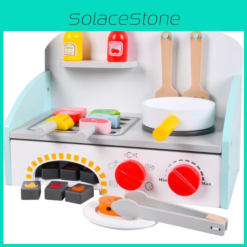 Wooden Simulation Kitchen Stove Kitchenware And Barbecue Grill Model Kid Toy For Parentchild Interaction