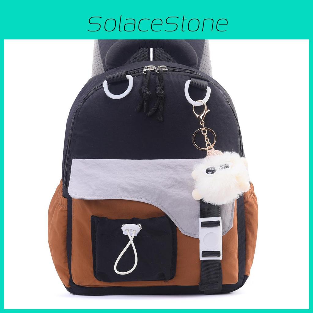 Childrens Color Blocked Backpack With Plush Pendant For School Use