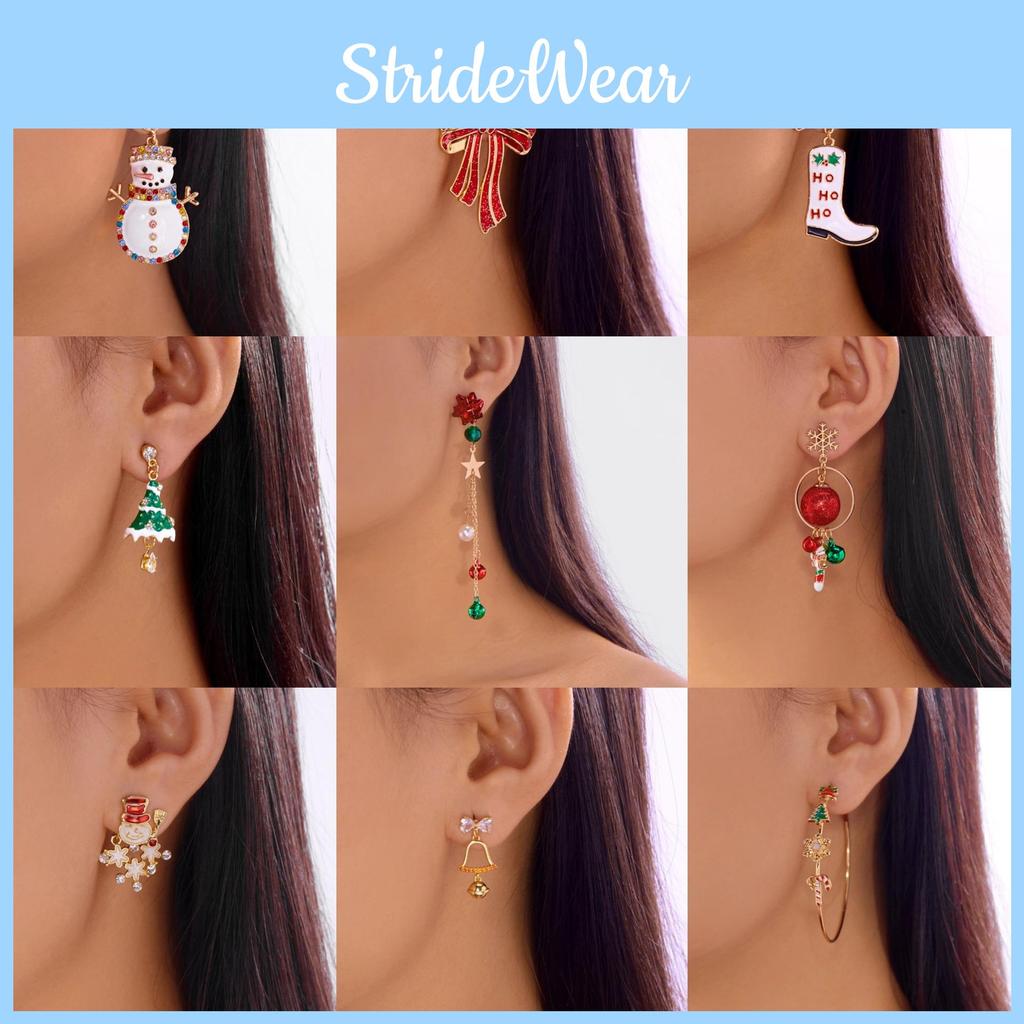 These Christmas festive earrings feature zinc alloy construction with electroplated finishes, showcasing detailed holiday motifs such as snowflakes, Santa, and reindeer incorporates stainless steel ear pins for durability. Ideal for holiday parties or seasonal wear, they add a cheerful touch to any festive outfit. Wipe clean with a soft cloth to maintain their shine.