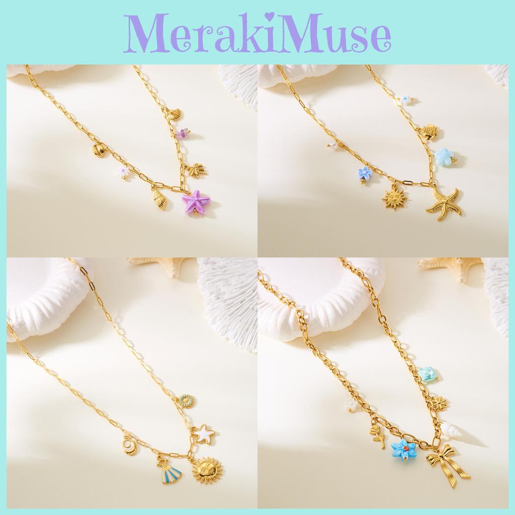 This multilayer stainless steel necklace features a sea turtle shell pendant, combining animal motifs with beach-inspired design. Crafted with a vacuum electroplated finish, The jewelry showcases colorful elements like shells, suns, and starfish, perfect for summer resort or vacation wear. Ideal for casual outings or seaside adventures, it supports regular cleaning with a damp cloth to maintain its shine.
