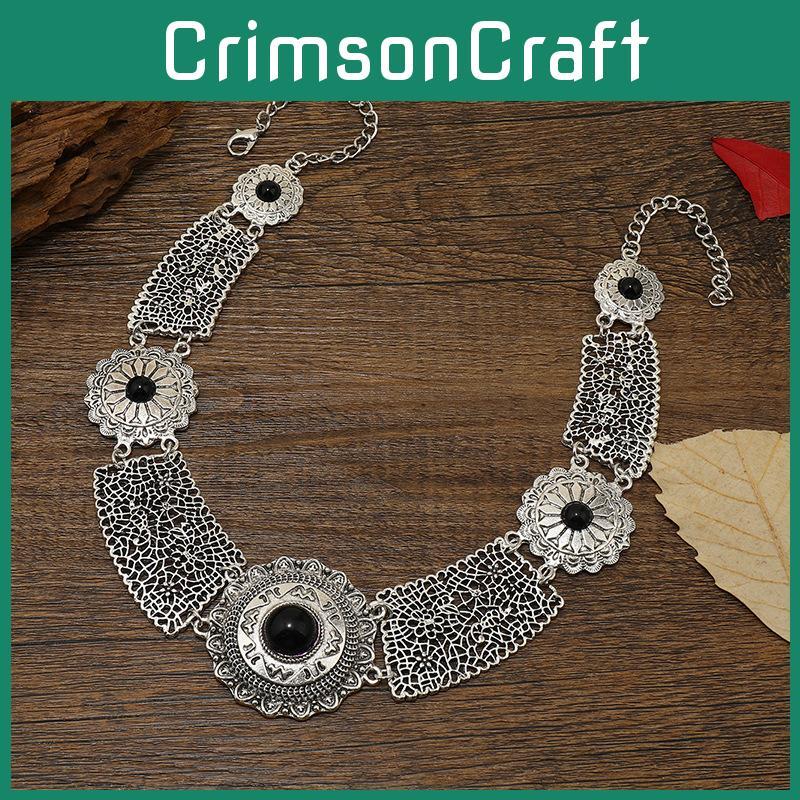 Ethnic Style Simulation Gemstone Decoration Hollow Design Women Metal Necklace For Special Occasion