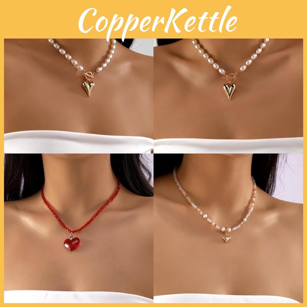 Heart Theme Layered Necklace With Crystal And Pearl For Summer Beach Outfits