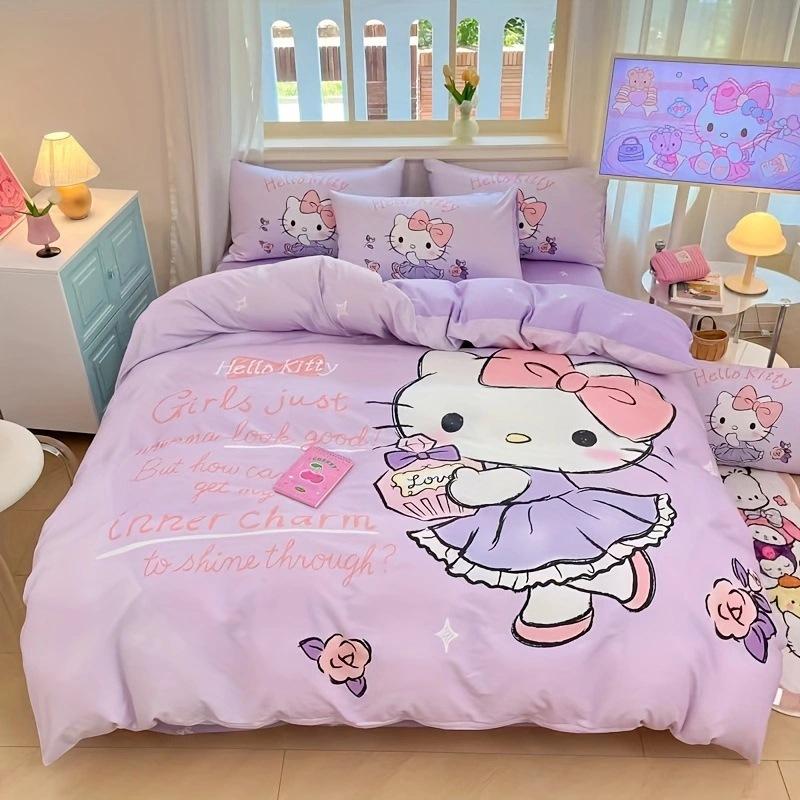 Bed Three-Piece Set, Sanrio Cartoon Series Digital Printing, Double-Sided Three (Four) Piece Set