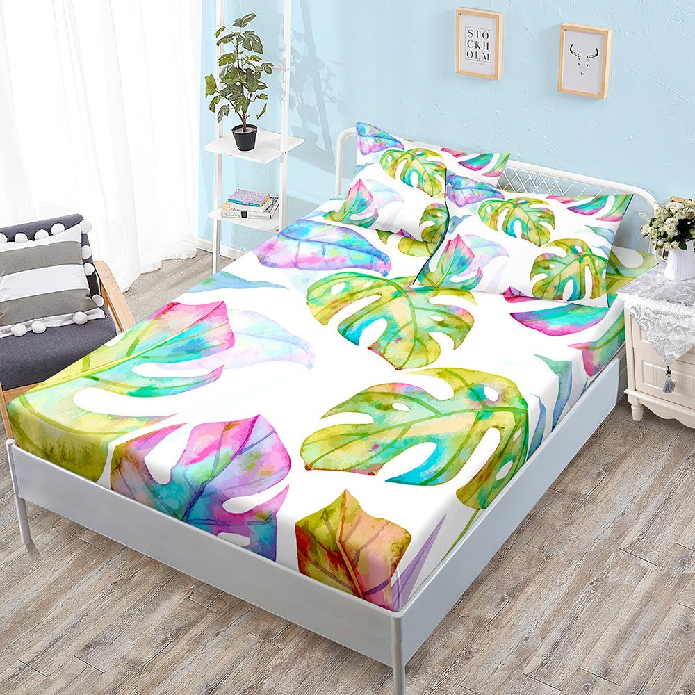 Sheet Three-Piece Bedspread Coconut Leaf Bedding Mattress Protective Cover