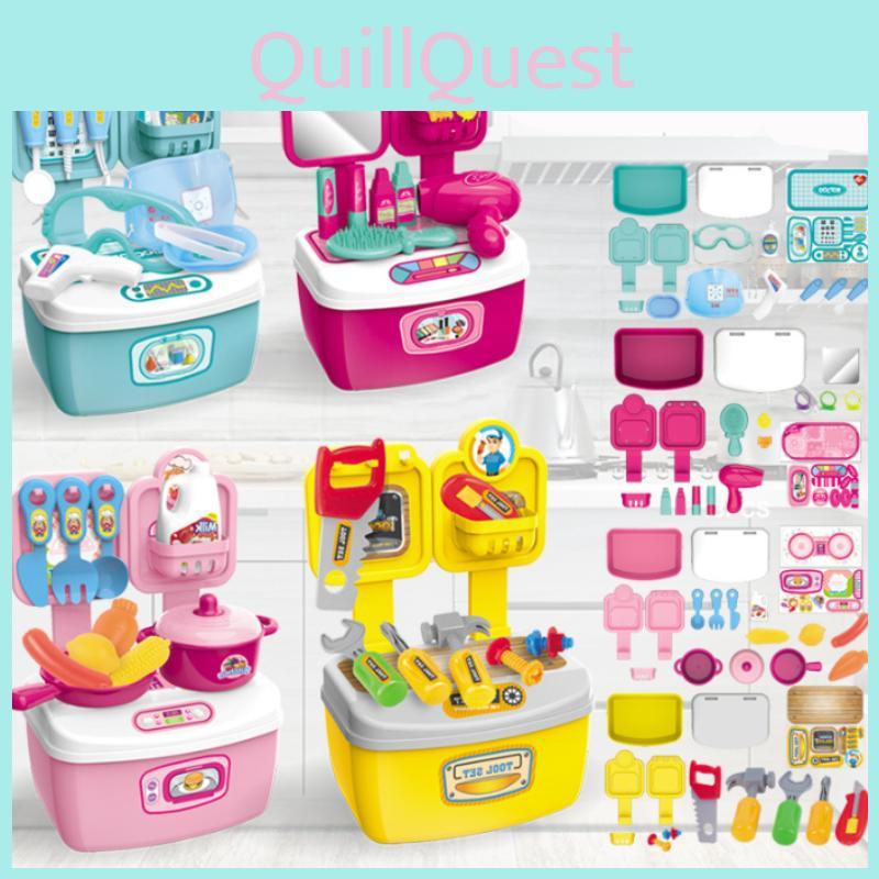 This pretend play kitchen and doctor toy set enhances children's imaginative role-playing with durable plastic construction measuring 25.5*17.5*12cm. Featuring vibrant colors like pink, blue, green, and rose red, it supports sensory development, fine motor skills, and parent-child interaction. Ideal for creative play at home or in classrooms, its easy to clean with a damp cloth.