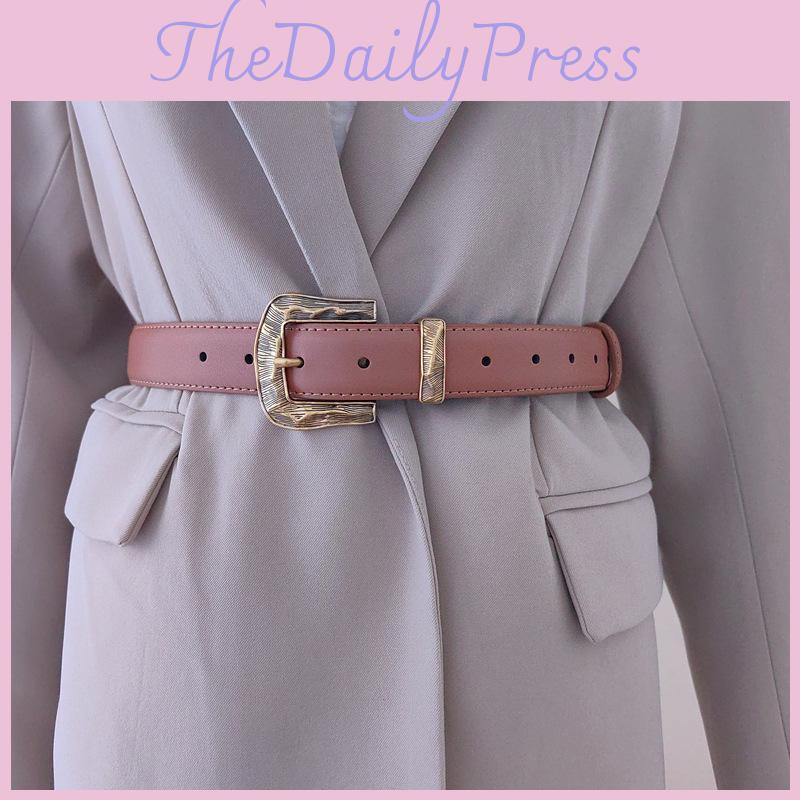 This women's leather belt features durable two-layer cowhide material with a polished finish, providing reliable support for casual and office outfits. Measuring 105cm in length, it offers a versatile fit. The metal pin buckle ensures secure closure and easy adjustment. Suitable for daily wear, it complements various styles. Wipe clean with a damp cloth to maintain its sleek appearance.