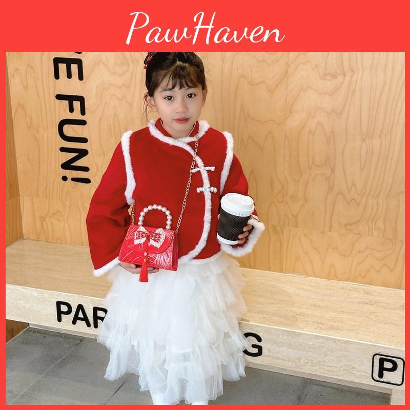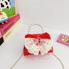 Adorable Red Shimmering Bow Pearl Children's Shoulder Bag For New Year Celebrations