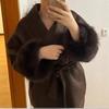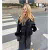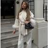 Fashion Lapel V-neck Woolen Coat Women Chic Lace Up Single Breasted Pocket Loose Jacket Lady Daily High Street Outwears
