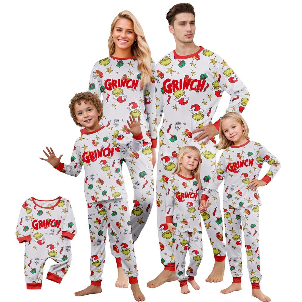 Print Cute Family Set Pajamas, Home Clothes, Family Set Long Sleeve Top Pants Set