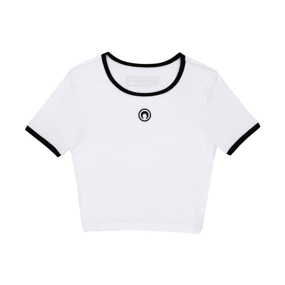 Product Name: Marine Serre Women's Short Sleeve T-Shirt Moon Logo Contrast Ringer Crop