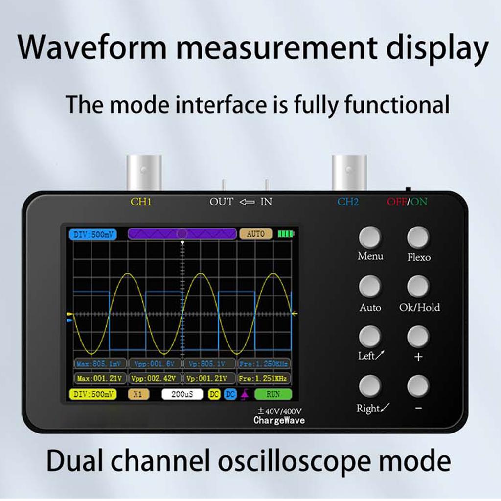 Compact Portable Digital Oscilloscope 50M Sampling Rate 10M Analogue Bandwidth Handheld Current Oscilloscope Cellphone Repairs Lissajous Patterns 6A Current Waveform Measurement Dual-channel Oscillosc
