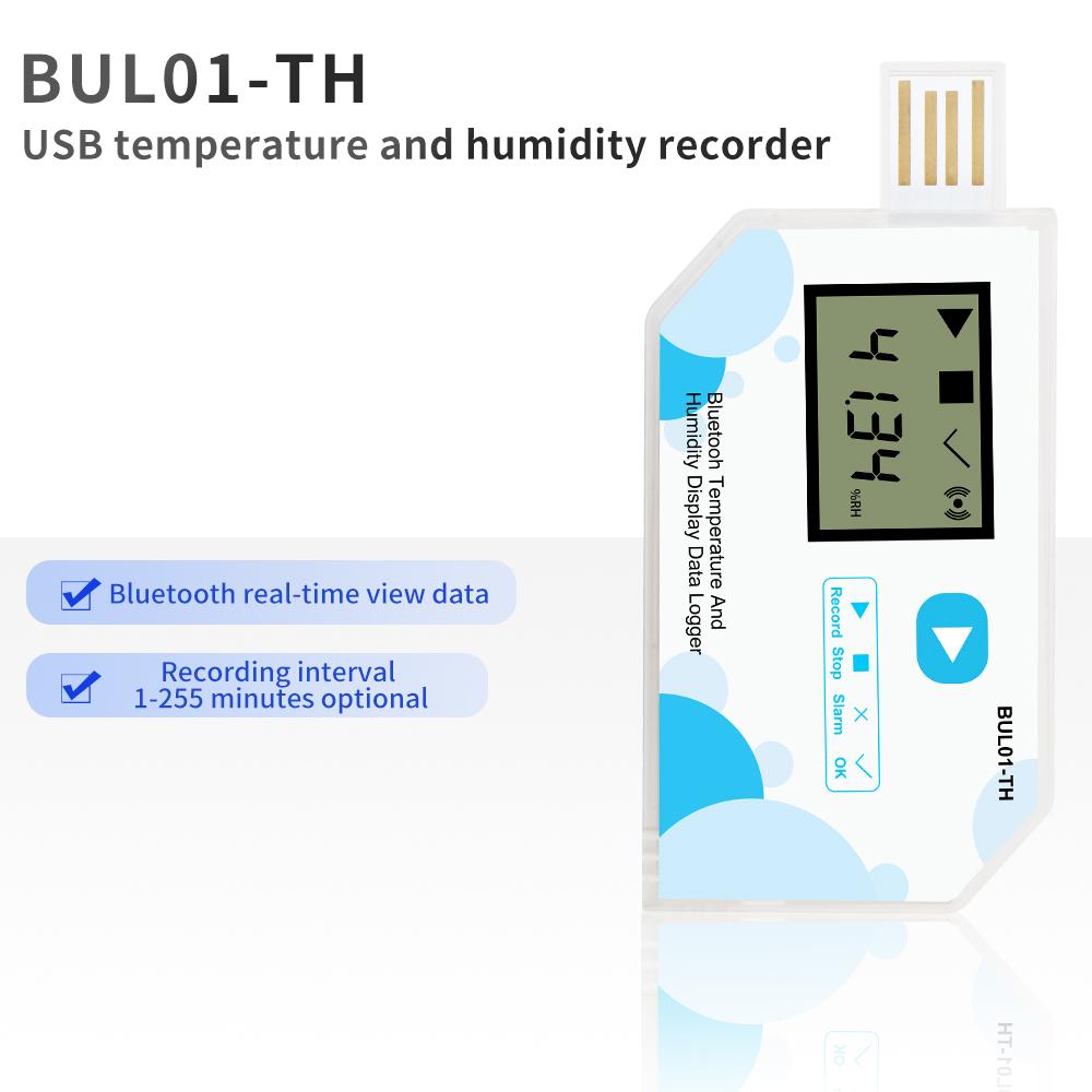 Bluetooth Temperature&Humidity Data Logger BUL01-TH USB Temp Recorder 60 Days Logger 14400 Points PDF Reporter for Cold-chain