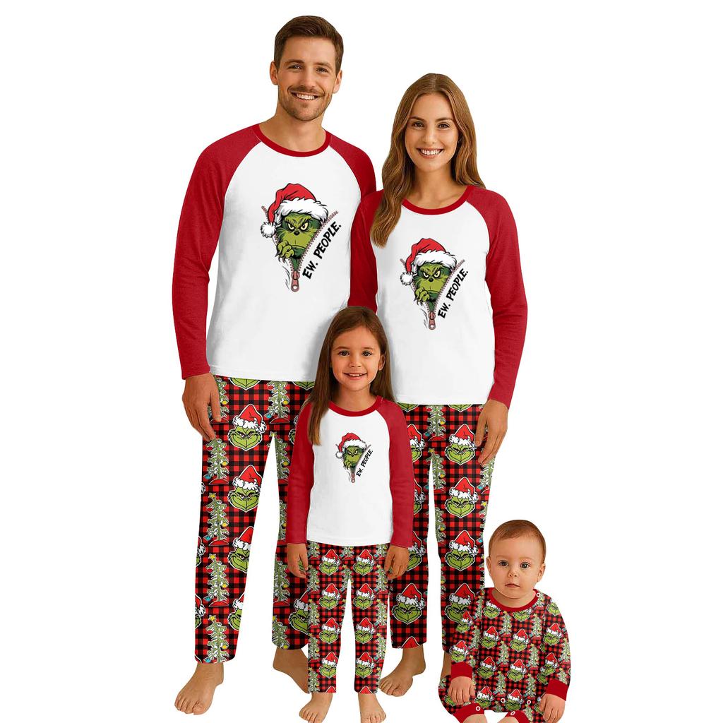 Print Cute Family Set Pajamas, Home Clothes, Family Set Long Sleeve Top Pants Set
